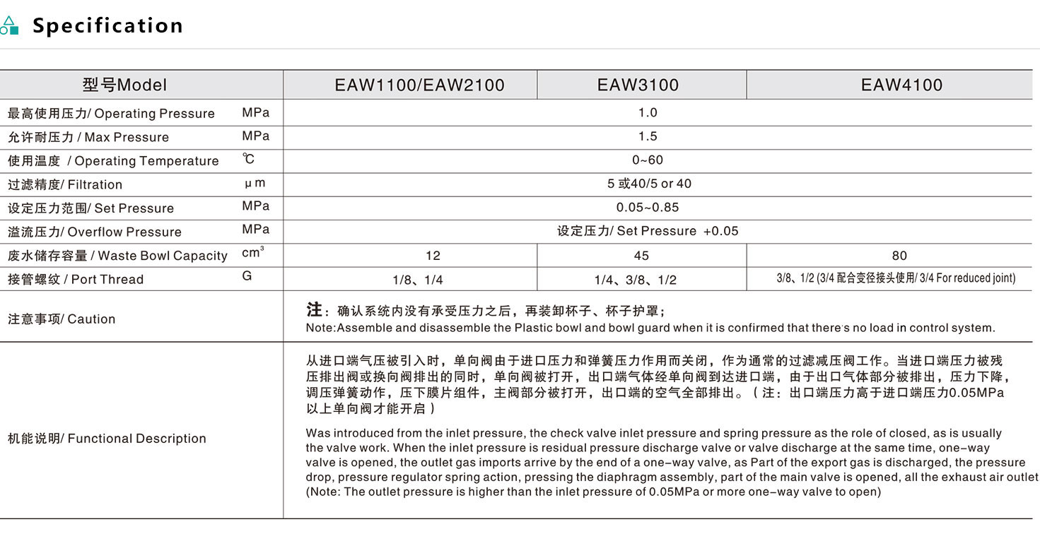 EAW Series check valve Filter Regulator