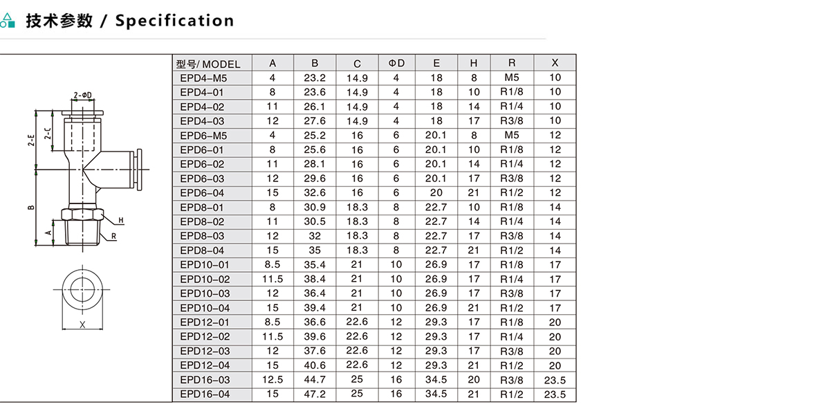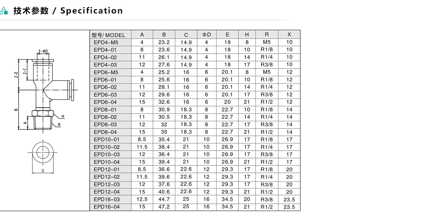 EPD/APD/ZPD T型分支螺紋三通