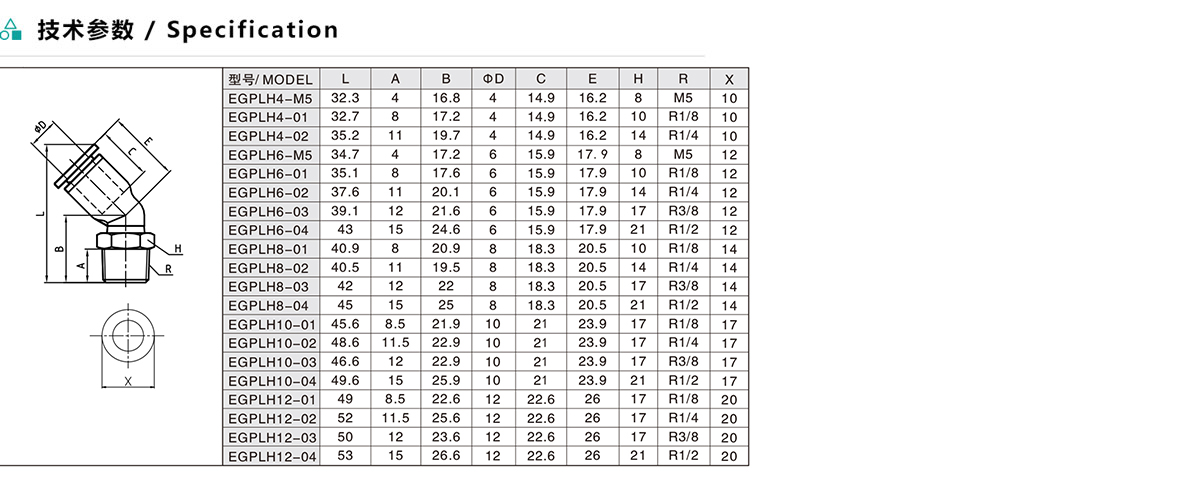 EGPLH/AGPLH 45°型螺紋二通