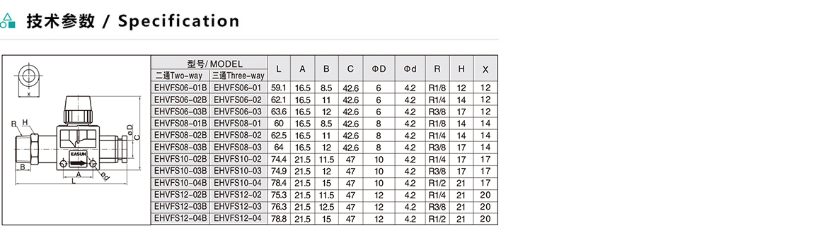 EHVFS/AHVFS 空氣由螺紋端流向插管端