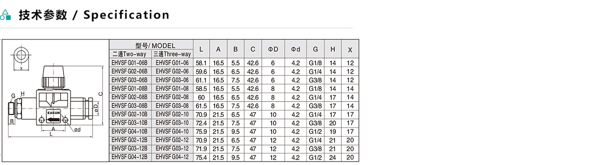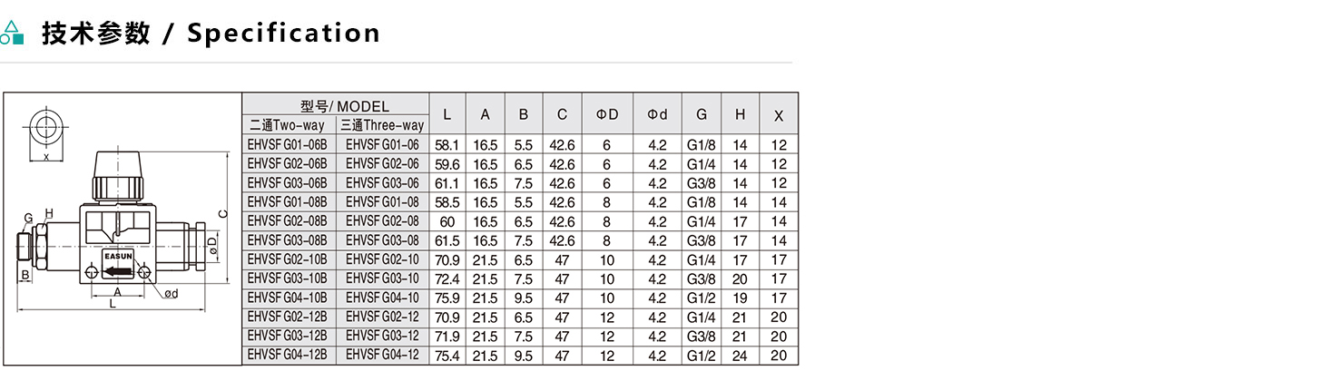 EHVSF-G/AHVSF-G 空氣由插管端流向螺紋端